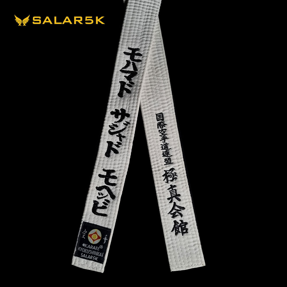 در سمت دیگر کمربند اسم صاحب کمربند به ژاپنی گلدوزی میشود.